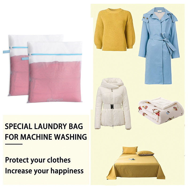 The delicate laundry bag set include 3 Small Size (9"x 12"). You & your clothes will love the premium mesh protecting your garments, It has large space, make washing more adequate, more clean. Suitable for washing clothes, jeans, and other large clothing, As well as bath towels, bed sheets, tablecloth, curtains, and other household items. Keeping them like new. The bags can also be used as organizers to separate different stuff in the closet and when travelling.