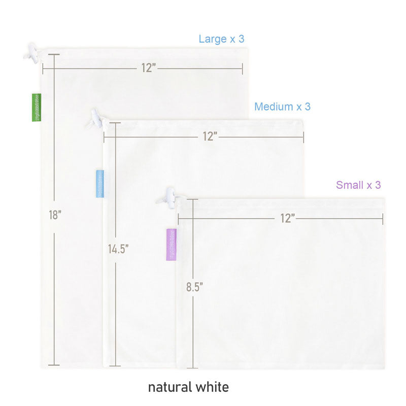 The mesh bags are not only just for produce or grocery, but also great for storage or sorting toys, beach trips, gym clothes, coins, medicine, cables, cosmetics, snack bags etc.
